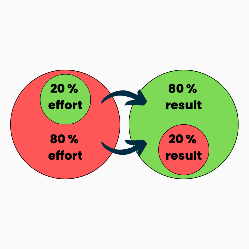 According to the 80-20 rule or also called Pareto Principle, just 20% of causes result in 80% of all outcomes. It is employed to identify the elements (usually in a business setting) that are most important to success and then concentrate on them to enhance outcomes. The principle also holds true in situations outside of business.