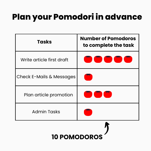 Plan your Pomodori in advance: